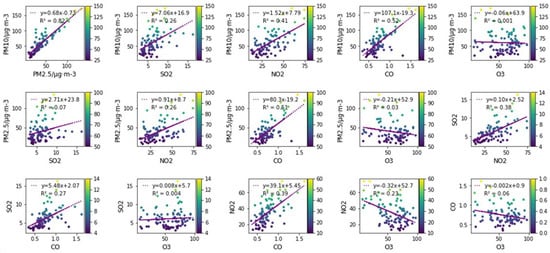 3.8. Correlation between Different Air Pollutants