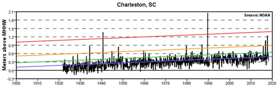 - National Oceanic and Atmospheric Administration (NOAA). Extreme Water Levels. Available online: https://tidesandcurrents.noaa.gov/est/est_station.shtml?stnid=8665530 (accessed on 1 May 2021).