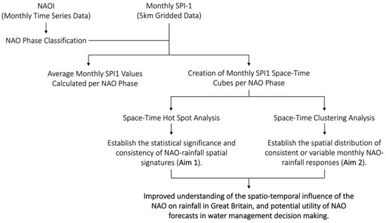 Figure 1 summarises the key stages of this analysis to explore space-time variability in monthly NAO-rainfall response across Great Britain, which are explained in full below.