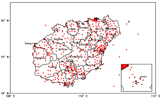 Distribution of ground automatic meteorological observation stations in Hainan Province.