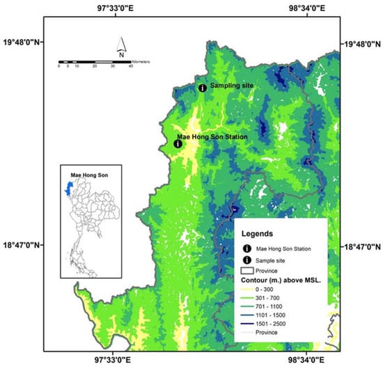- Thai Meteorological Department. Average Rainfall and Temperature Data from Mae Hong Son Station. Available online: http://www.tmd.go.th (accessed on 25 February 2021).
