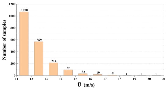 As shown in Table 1, the number of the samples with mean wind speeds higher than 11 m/s is 2012, which is enough for a statistical analysis to be carried out, assuming that the wind speed is associated with the neutral properties of synoptic events [5,6] and thus related to the wind-resistant design of structures.