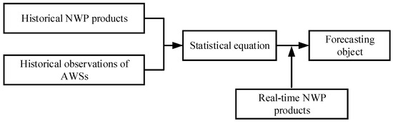 The rest of this paper is structured as follows. The Section 2 summarizes the Model Output Statistics (MOS) and Machine Learning Model Output Statistics ML-MOS model principles. In the Section 3, we present the implementation of the ML-MOS model, including the multi-source meteorological data processing method and two types of automatic regional interpretation and forecasting models. The Section 4 outlines the experimental data source and experimental analysis; Finally, the Section 5 gives the conclusion and future work.