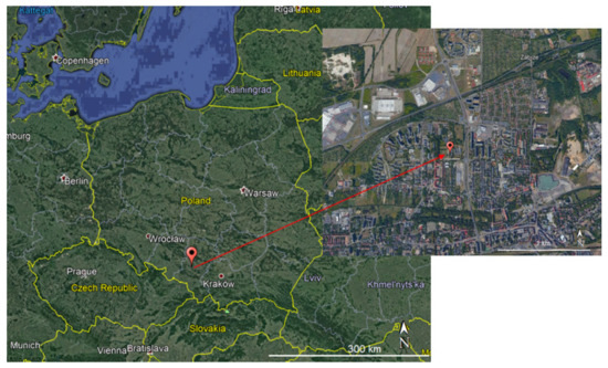 Concentrations of eBC were measured in the years 2009–2020 at the urban background station of the Institute of Environmental Engineering of the Polish Academy of Sciences in Zabrze (IEE PAS) (50.1° N, 18.2° E), localized in the western part of the Silesian Voivodeship (SW Poland), within the Upper Silesian Industrial District (USID) (Figure 1). The measurement station is located in the central-western part of the city and in its immediate vicinity there are residential buildings, houses, allotment gardens, internal roads, and the provincial road No. 921—approx. 300 m away. The nearest industrial area is approximately 1 km southeast of the IEE PAS station and includes facilities for the manufacturing, metallurgy, and coke industries. The detailed development of the area of the city of Zabrze was presented in [15].