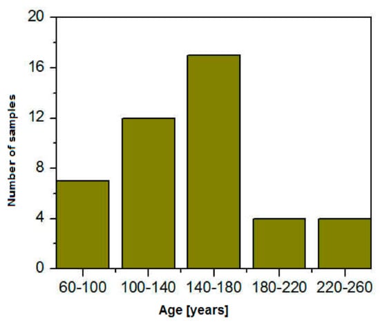 - Another long-lived beech sample (age 245 ± 5years; logged in 2012 AD) time series is used for an additional analysis. The used calendar range of this sample is 1811–2011 AD. The kinematic model extrapolation calendar range is 2012–2045 AD.
