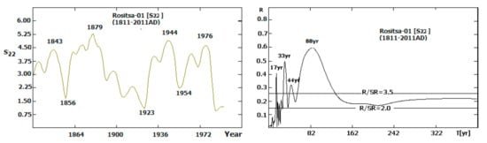 - In their T–R spectra, the solar modulated 20–22 year cycle is much better expressed as in the spectra of the remained five.