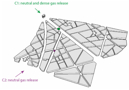 4.3. Dispersion of Neutral and Dense Gas in an Urban Area