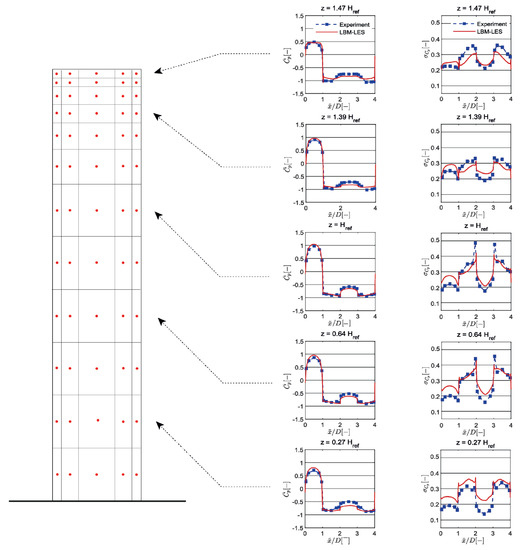 - Buffa, E.; Jacob, J.; Sagaut, P. Lattice-Boltzmann-based large-eddy simulation of high-rise building aerodynamics with inlet turbulence reconstruction. J. Wind Eng. Ind. Aerodyn. 2021, 212, 104560. [Google Scholar] [CrossRef]