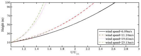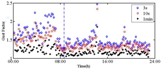Gust factor at different heights (10 m, 80 m, 100 m).
