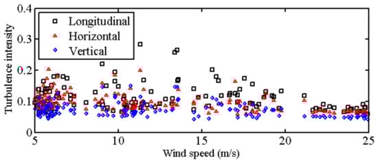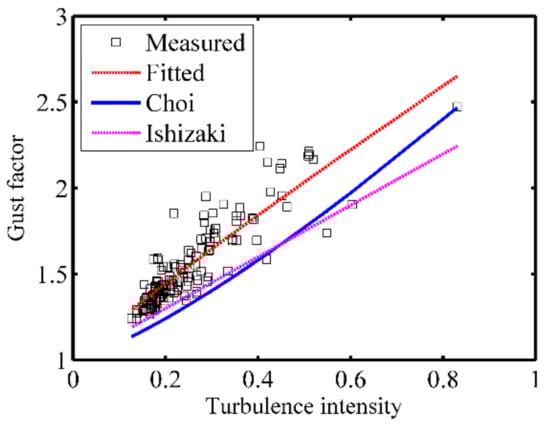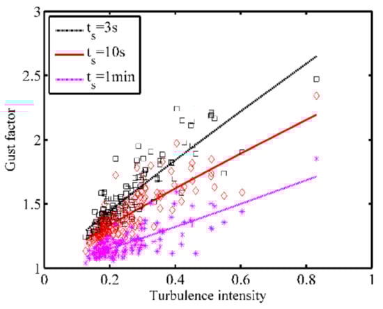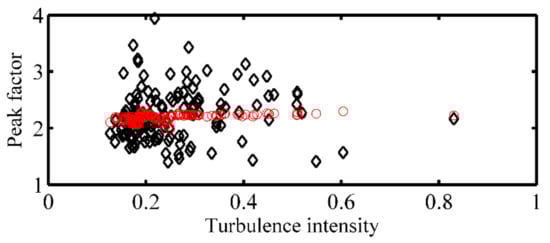 Peak factors with turbulence intensities during Typhoon “Maria” (t = 3 s).
