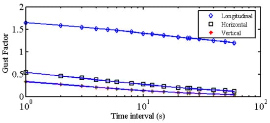 Relationship between the turbulence intensity and the gust factor at different time intervals.