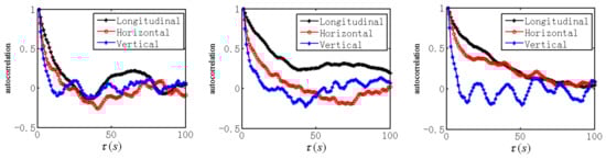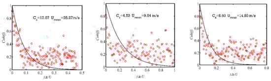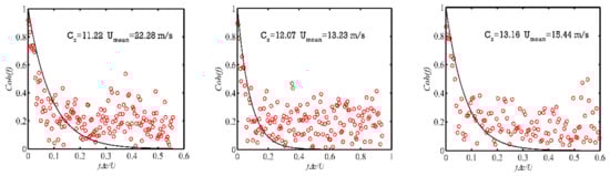 Autocorrelation coefficients of wind speed fluctuation components (10 m, 80 m, and 100 m).