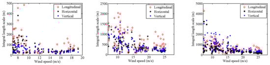Integral length scale of the wind speed (10 m, 80 m, and 100 m).