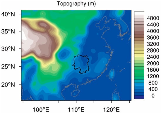 From 25 to 26 August 2019, Typhoon Bailu caused rainstorms in southeast Hunan, and the strongest precipitation occurred in the early morning of 26 August. The 38 h from 08:00 on the 25th to 20:00 on the 26th were selected as the study period.