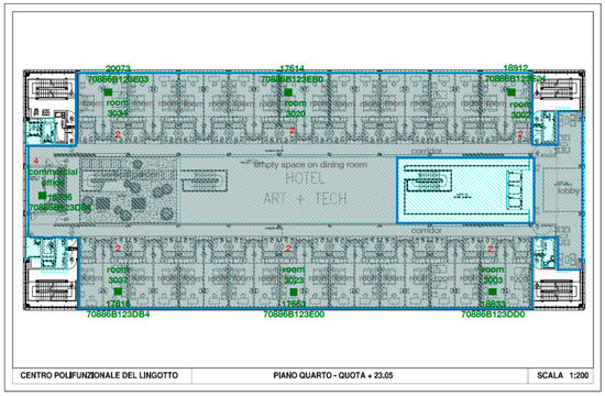 The building was designed by Renzo Piano and it is located in the historic former FIAT factory, next to the Lingotto Congress Center and the underground station, in the city of Turin (Northern Italy). This hotel retains a distinguishing architecture, with large windows and high ceilings, providing natural light, and the former FIAT test track on the roof. The hotel has 144 rooms developed over 4 floors and typically hosts guest all throughout the year, visiting the city not only for business purposes but also for tourism. The building is equipped with a centralized air treatment and ventilation system, treating all the different environments uniformly.
