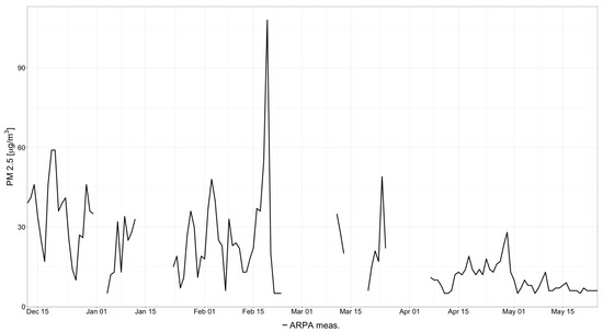 Concentrations of PM 2.5 (μm/m3) detected by Stazione Arpa Torino Lingotto, over the same time span of the study.