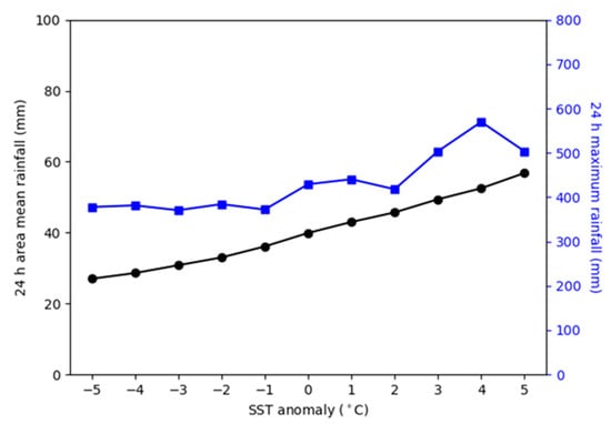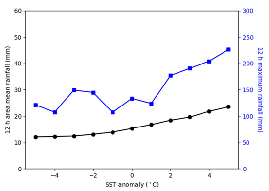 The potential influence of the climate change on Mediterranean Sea SST over the coming decades is projected to warm the by 1.73–2.97 °C relative to the 1961–1990 climatology [42]. The results of our SST anomaly experiments suggest that extreme storms in the Mediterranean region will be stronger as the sea surface warms, consistently leading to increased rainfall and the potential for severe flooding. Maximum wind speeds may also be expected to increase as the SST warms, especially in storms such as TLCs that develop mainly over the sea, assuming that upper air conditions remain unchanged.