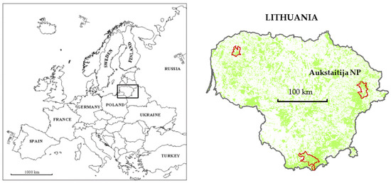 Location of the studied object and Aukstaitija National Park in Lithuania.