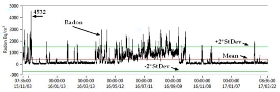 Each monitoring station also has a weather station installed to decide whether radon emission anomalies are caused by weather conditions [,]. For this reason, the annual, seasonal, and daily variations of radon are determined in order to eliminate them from the category of anomalies [].