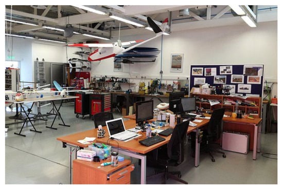 Workshops: USRL is composed of a team of ca. 10 experts with a wide range of complementary skills (electrical/electronic/mechanical engineering, software development, science, composites material fabrication and piloting). This diversity allows the facility to perform well in the design and development of the UAS, the integration of a variety of instruments as well as testing, operation, data acquisition and analysis. The USRL workshop (Figure 2) is located at the Cyprus Institute (CyI) premises (Athalassa campus, Nicosia, Cyprus). It comprises (1) an advanced electromechanical laboratory where the design and development of UAS components and integration of sensors takes place, and (2) a separated composite materials laboratory dedicated to the in-house construction of fixed-wing and multi-rotor UAVs as well as the construction of lightweight and robust mounts for optimal integration of the scientific instruments.