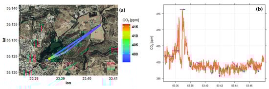 SenseAir HPP CO2: Atmospheric CO2 observations are performed with a High-Performance Platform (HPP) non-dispersive infrared CO2 sensor from Senseair AB (Delsbo, Sweden) [56,57]. The CO2 sensor is integrated on-board the UAS of USRL for CO2 measurements of ambient air throughout the atmospheric column and for capturing the spatial variability of CO2 concentration. More information on the integration, qualification, and exploitation of SenseAir HPP CO2 mapping can be found in Liu et al. (in preparation).