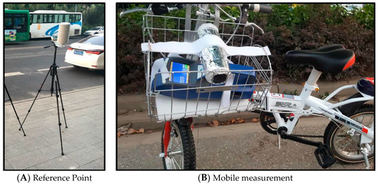 Instruments’ installations of the reference point (A) and for mobile measurements (B).