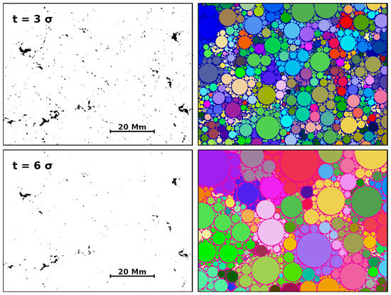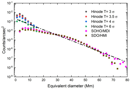 - Berrilli, F.; Scardigli, S.; Del Moro, D. Magnetic pattern at supergranulation scale: The void size distribution. Astron. Astrophys. 2014, 568, A102. [Google Scholar] [CrossRef][Green Version]