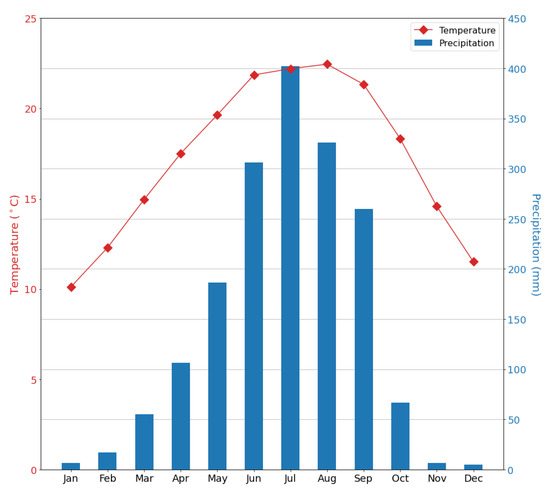 The climatology of Bhutan based on measurements from the 20 weather stations managed by the Bhutan Hydrological department. Temperature refers to average monthly surface air temperature (°C) and precipitation is the mean monthly total precipitation (mm). It is based on the period covered by the weather station records from 2012 to 2019.