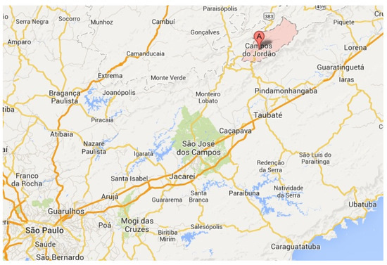 Location of Campos do Jordão city (Red Point). Source: maps.google.com.br, accessed on 10 February 2021.