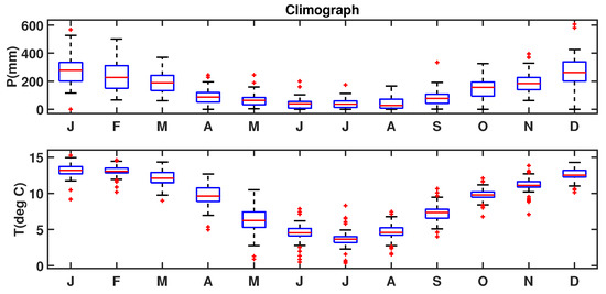 In this study, monthly and annual temperature and precipitation series of the Campos do Jordão station—SP (OMM: 83714)—were used. These series are available at the INMET site (Instituto Nacional de Meteorologia). In this paper, we use the MATLAB functions developed by [34], Seascorr, to summarize the seasonal climate signal in our tree ring mean chronology. Figure 5 shows the climograph of the region. It can be observed that both precipitation and temperature follow the same pattern of monthly distribution. However, it can be noted that the precipitation does not vary much during the year (∼200 mm) and, also, the temperature (∼10 °C). The intercorrelation between the climatic variables (precipitation and temperature) was also evaluated, and has low correlation along the computed periods, with the majority below 50% (Figure 6).