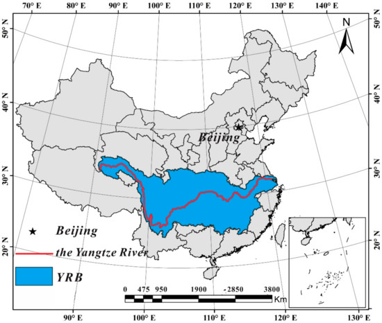 The YRB (24°30–35°45′ N, 90°33′–122°25′ E) contains the longest river in China and covers an area of 1.8 million km2, accounting for 18.75% of the land area of China (Figure 1). It originates in the southwest of the Geladaindong mountains and the main peak of the Tanggula mountains on the Qinghai–Tibet Plateau. It flows through eight provinces, two municipalities, and one autonomous region, with a total length of 6300 km and a total difference in elevation of more than 5400 m [18]. The YRB has 11 s-class basins, including the Jinsha River Basin, Mintuo River Basin, Jialing River Basin, upstream section, Wujiang River Basin, Hanjiang River Basin, middle-reach section, Dongting Lake Basin, Poyang Lake Basin, downstream section, and Taihu Lake Basin [19].