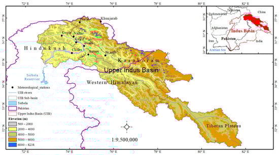 Location of meteorological stations in the Upper Indus Basin (UIB).