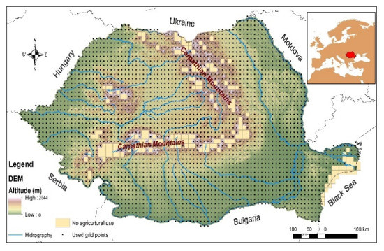 This research was developed under the framework of the demonstration experimental project Redefining the agro-suitability zones for maize and winter wheat crops towards a smart climate change-oriented agriculture in Romania (www.agroclim.ro, accessed on 1 July 2021). The authors acknowledge the land use data freely provided by the Agency for Payment and Interventions in Agriculture in Romania (http://www.apia.org.ro/, accessed on 1 July 2021). We also acknowledge graphic technical support to Mugurel Raul Sidau.