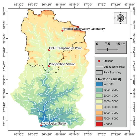 - Savéan, M.; Delclaux, F.; Chevallier, P.; Wagnon, P.; Gonga-Saholiariliva, N.; Sharma, R.; Neppel, L.; Arnaud, Y. Water budget on the Dudh Koshi River (Nepal): Uncertainties on precipitation. J. Hydrol. 2015, 531, 850–862. [Google Scholar] [CrossRef]