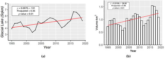 | Glacial Lake Area | Winter | y = 0.0784x − 154 | R2 = 0.19 | ** |