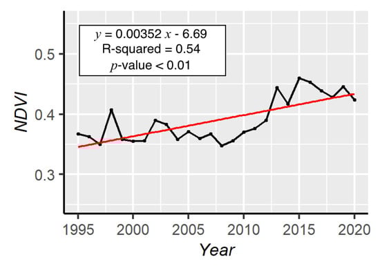 | Mean NDVI | Winter | y = 0.00338x − 6.45 | R2 = 0.48 | *** |