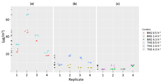 - International Organization for Standardization (ISO). ISO 16000-6. Indoor Air Part 6: Determination of Volatile Organic Compounds in Indoor and Test Chamber Air by Active Sampling on Tenax TA Sorbent, Thermal Desorption and Gas Chromatography using MS or MS-FID; International Organization for Standardization (ISO): Geneva, Switzerland, 2011. [Google Scholar]