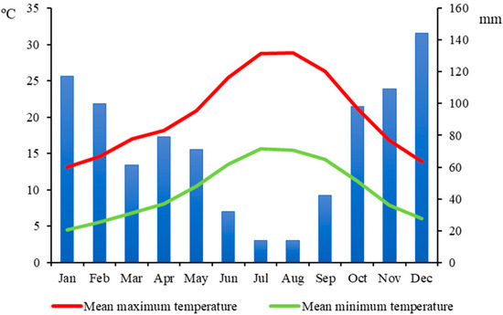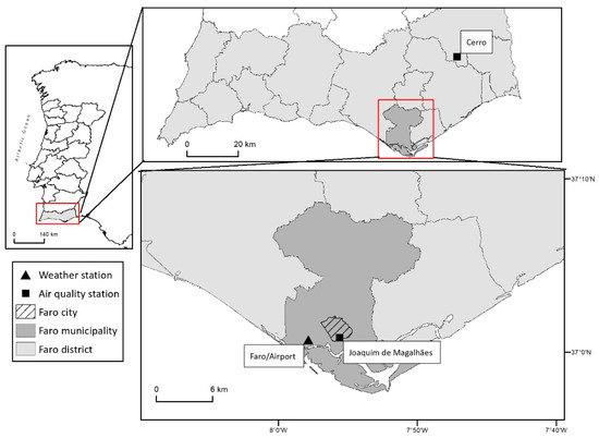 The Faro district is located in the south of Portugal and is characterized by a Mediterranean climate, with a predominantly cool wet season and dry summer (Figure 1).