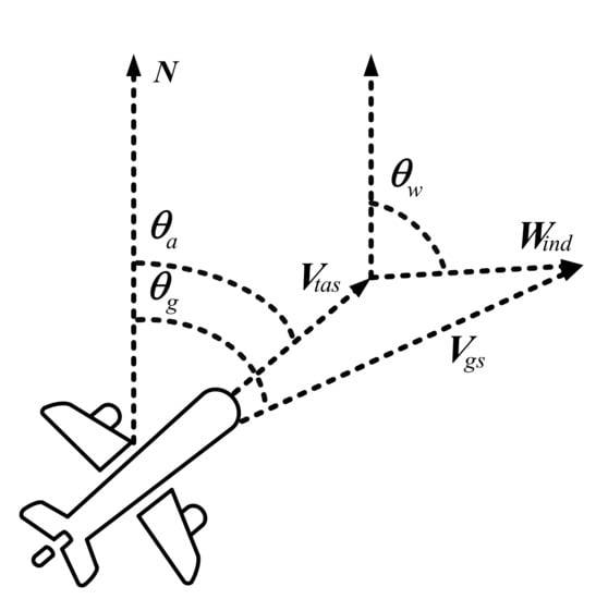 where, is the ground speed vector, is the airspeed vector and is the wind speed vector.