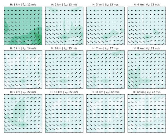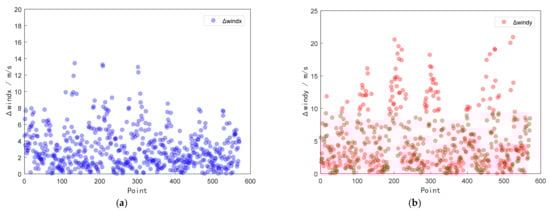 Therefore, the wind vector of each grid point can be calculated by Equation (11).