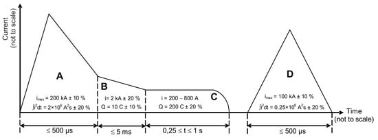 12]. The current component A combines the severe parameters of the negative and positive first return stroke that are observed in cloud-to-ground lightning. Component B and component C represent the ICC and the continuing current that are observed in aircraft-triggered lightning and in cloud-to-ground lightning, respectively. Finally, component D represents the threat by the current of the subsequent return stroke.