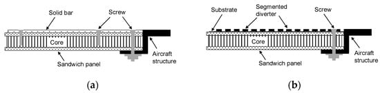Solid strips are usually fastened by screws or bolts on the sandwich panel and on the aircraft structure. The segmented diverter strips consist of a series of small buttons placed on a thin insulating substrate. The buttons are made of copper alloy and coated by a thin nickel layer. The insulating substrate is fastened to the sandwich by a glue and the end of the strip is connected to the aircraft structure by a screw or a bolt.