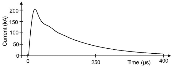 24]. To prove the effectiveness of the lightning interception, the full-scale radome was tested with the slow-rising high-voltage waveform D. Because the slow-varying double waveform D commonly covers the most critical case, this voltage waveform was selected in [