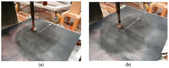 At the tip of the solid diverter strip, the paint was completely removed. Thermal damage was also visible to the paint around the current attachment point and on the surface of the fixing bolt and of the (titanium) screws used for contact with the aircraft structure. It should be noted that segmented diverter strips are generally replaced after one lightning load to avoid the possible failure of the lightning protection system. However, there was no indication of damage to the radome sandwich structure, and there was no visible damage on the rear side of the samples caused by the shock waves of the supersonic expansion of the plasma channel. Ultrasound tests performed after the lightning tests confirm this finding; neither delamination of the GFRP skins and of the honeycomb core nor squeezing of the honeycomb core were found.