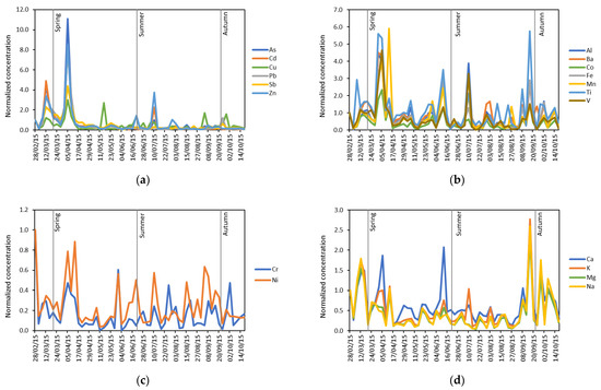 - Conca, E.; Abollino, O.; Giacomino, A.; Buoso, S.; Traversi, R.; Becagli, S.; Grotti, M.; Malandrino, M. Source identification and temporal evolution of trace elements in PM10 collected near to Ny-Ålesund (Norwegian Arctic). Atmos. Environ. 2019, 203, 153–165. [Google Scholar] [CrossRef]