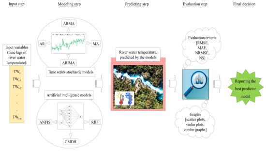 - Zhu, S.; Heddam, S.; Nyarko, E.K.; Hadzima-Nyarko, M.; Piccolroaz, S.; Wu, S. Modeling daily water temperature for rivers: Comparison between adaptive neuro-fuzzy inference systems and artificial neural networks models. Environ. Sci. Pollut. Res. 2019, 26, 402–420. [Google Scholar] [CrossRef]