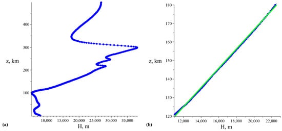 According to the graph for the atmosphere’s scale height in Figure 2a, we will focus on the approximately linear part in the interval z km.