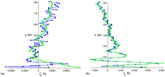 The oscillations of the RHSs of the diagnostic equations for (Figure 3), apart from a small variation of the function , appear due to the application of differentiation operation to the dataset components as in (42), which scale of coordinate differences and errors are noticeable.