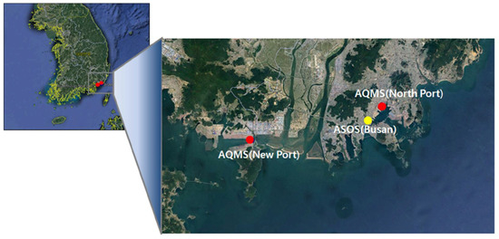 Recently, the World Health Organization (WHO) recommended an average annual PM2.5 concentration (i.e., concentration of particles with a diameter less than 2.5 μm) of 10 µg/m3 in South Korea. However, as of 2019, these levels exceeded those stipulated in the guideline by 13 µg/m3, thus raising interest in PM2.5 concentrations in Korea. Some PM sources are emitted directly from construction sites or unpaved roads. However, most PMs are formed in the atmosphere as a result of complex reactions of chemicals such as NO2 and SO2, which are pollutants emitted from power plants, industries, ships, and automobiles. PM2.5 is a class 1 carcinogen designated by the WHO and can cause lung cancer if the particles enter the lungs of the human body. There are reports of more harm to the human body than other pollutants such as NO2 and SO2 [1,2,3]. Consequently, the Department of Environment and other related government departments jointly prepared the “Special Measures for PM Management” in August 2017 and announced the PM Management General Plan (2020–2024) in November 2019 as an effort to reduce air pollution [4]. Such efforts are being made across seaports. The ability to accurately predict air pollution levels is, arguably, as important as the efforts to reduce air pollution.
