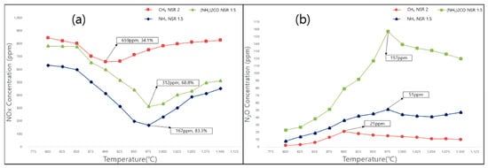 3.2. NOx Reduction Performances of Ammonia, Urea, and Methane